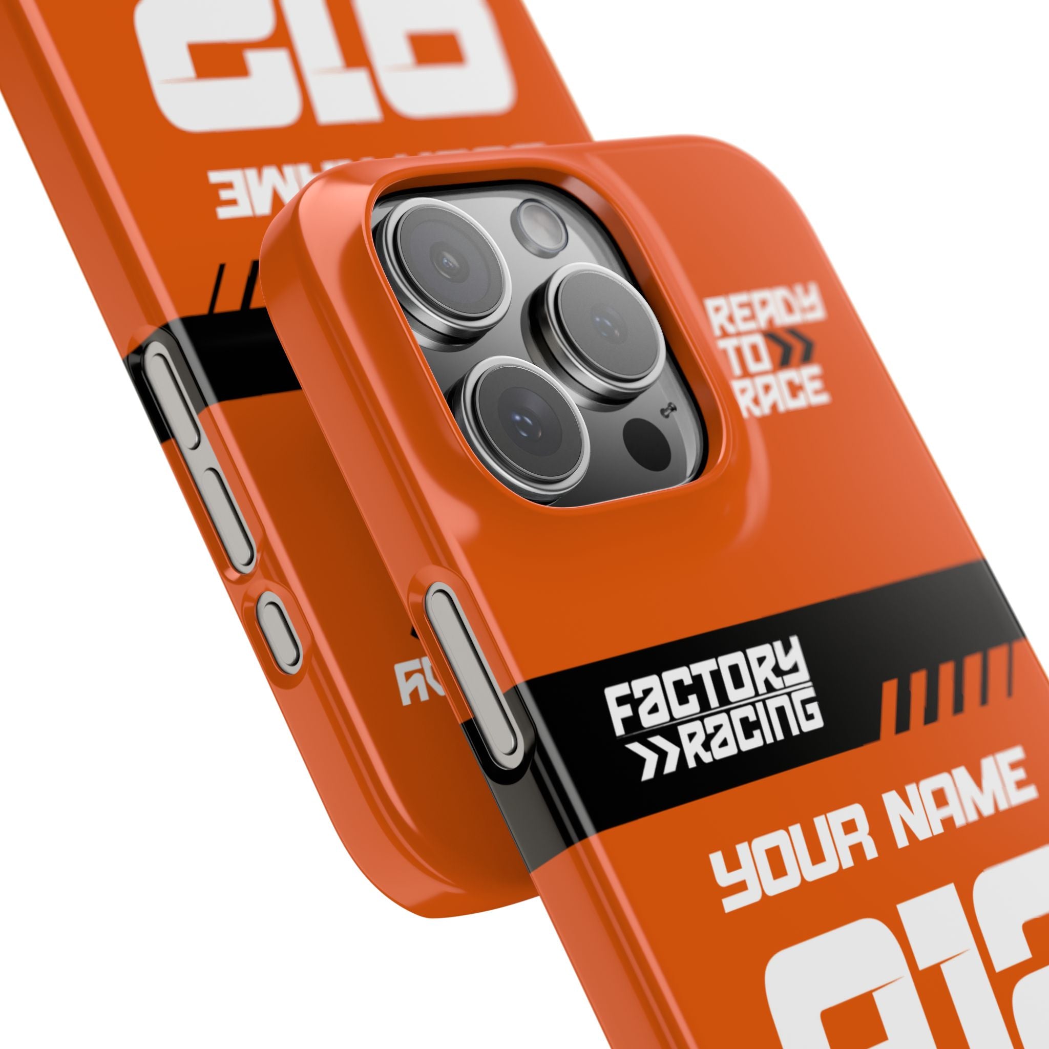 MX ist Persönlichkeit – und genau das spiegelt dieses Case wider. Füge Deine Startnummer, Fahrer-ID oder Dein persönliches Logo hinzu und gestalte ein individuelles Racing-Cover, das zu 100 % Deinen Look trifft. Egal ob Hobby-Racer oder Pro – mit dem KTM one wird Dein Smartphone Teil Deines persönlichen Factory-Setups.